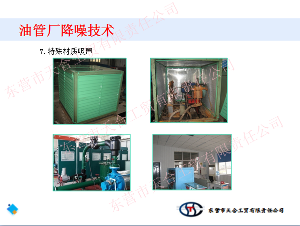 我公司從事油管廠整體噪聲治理多年,對油管廠的噪聲有詳細的了解和解決各類噪聲的完整方案,并且現場經驗十分豐富,針對不同的要求設計出適合客戶的解決方案。從聲源上根治噪聲,經治理后的設備的噪聲從原有110分貝降至65分貝以下,有力的改善職工的工作環境和降低周圍的噪聲污染。
